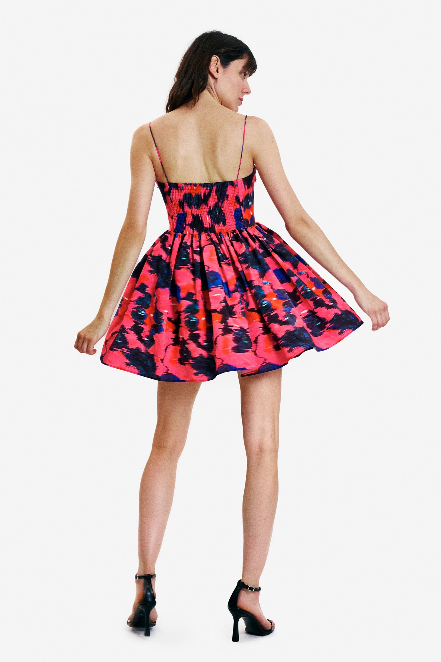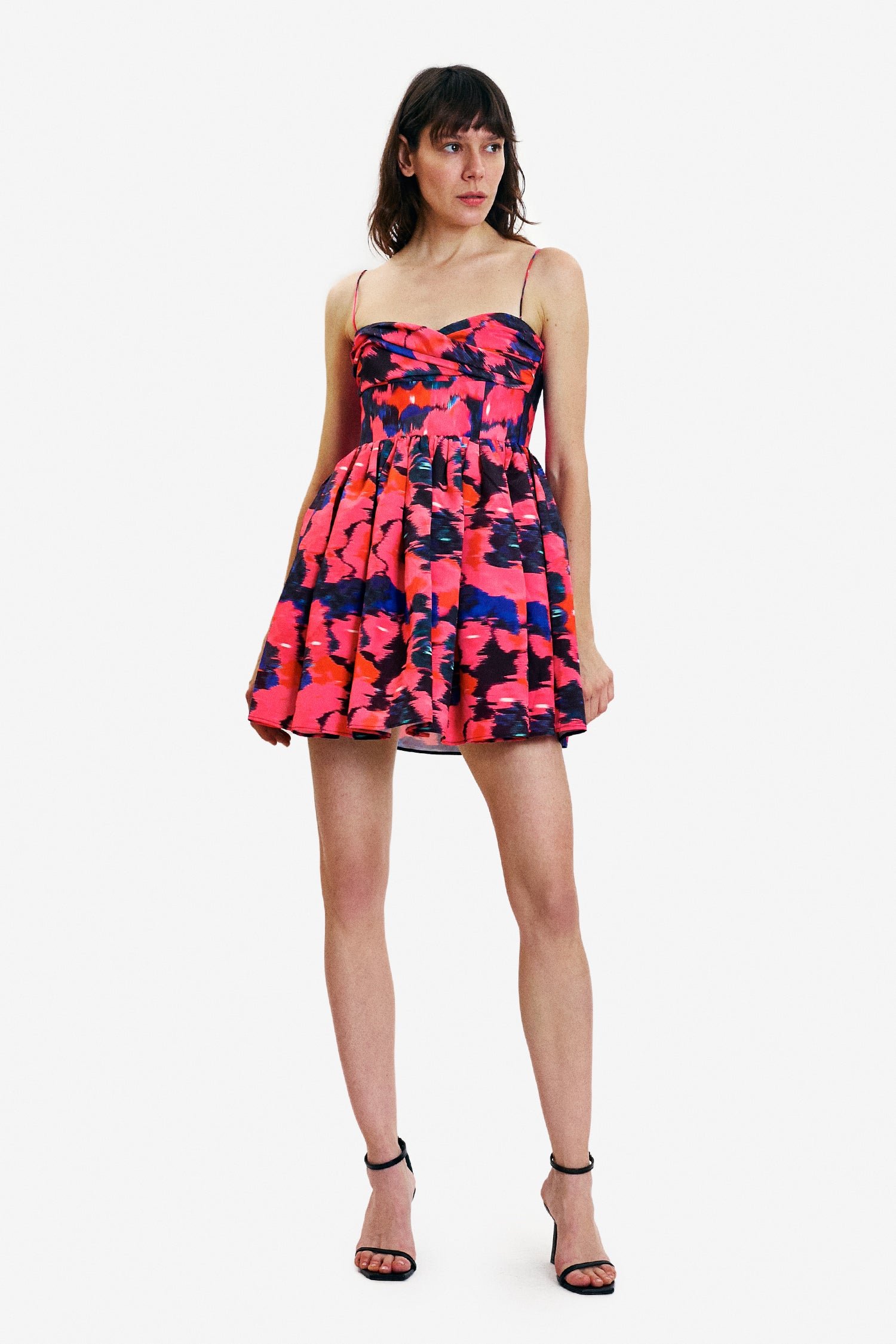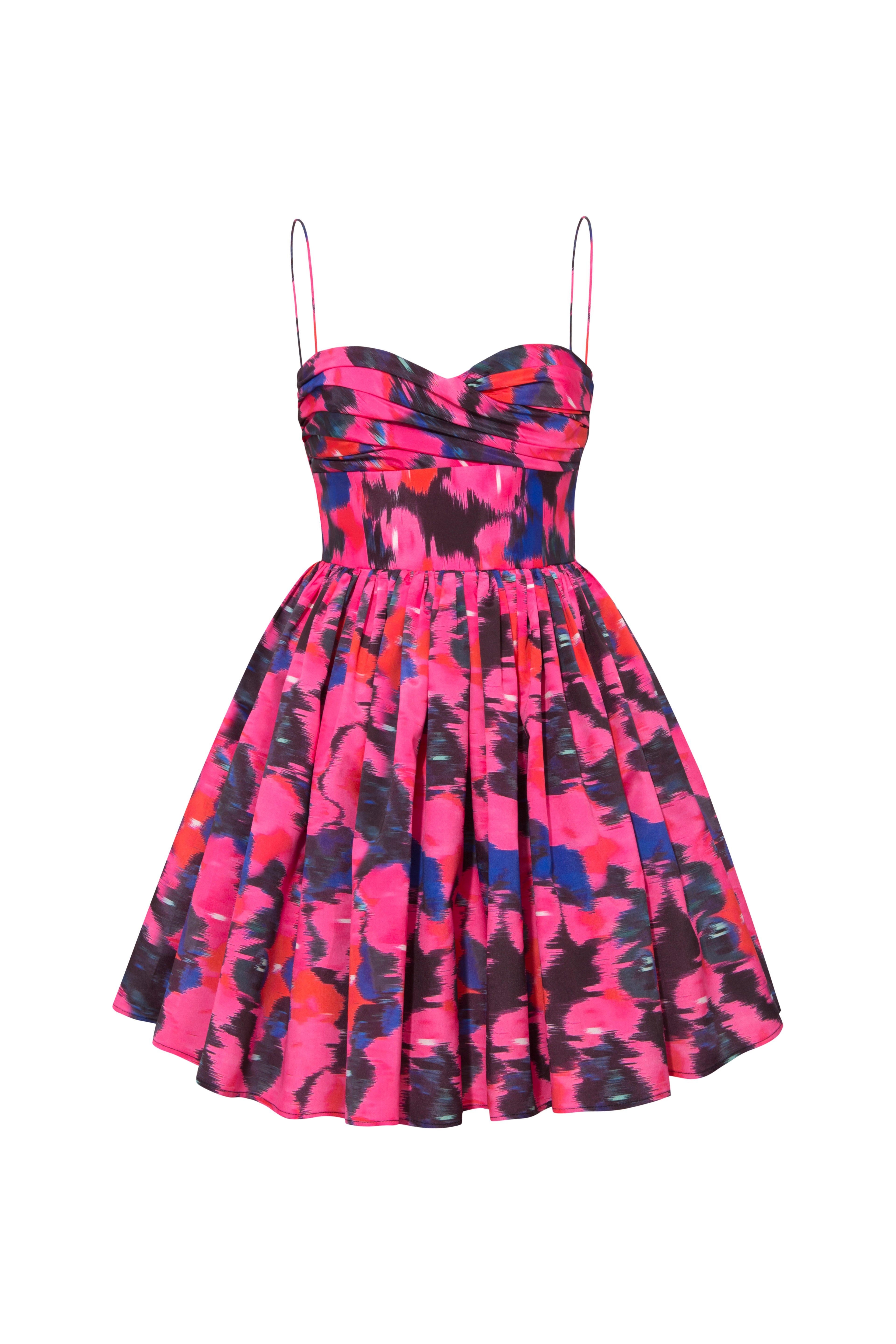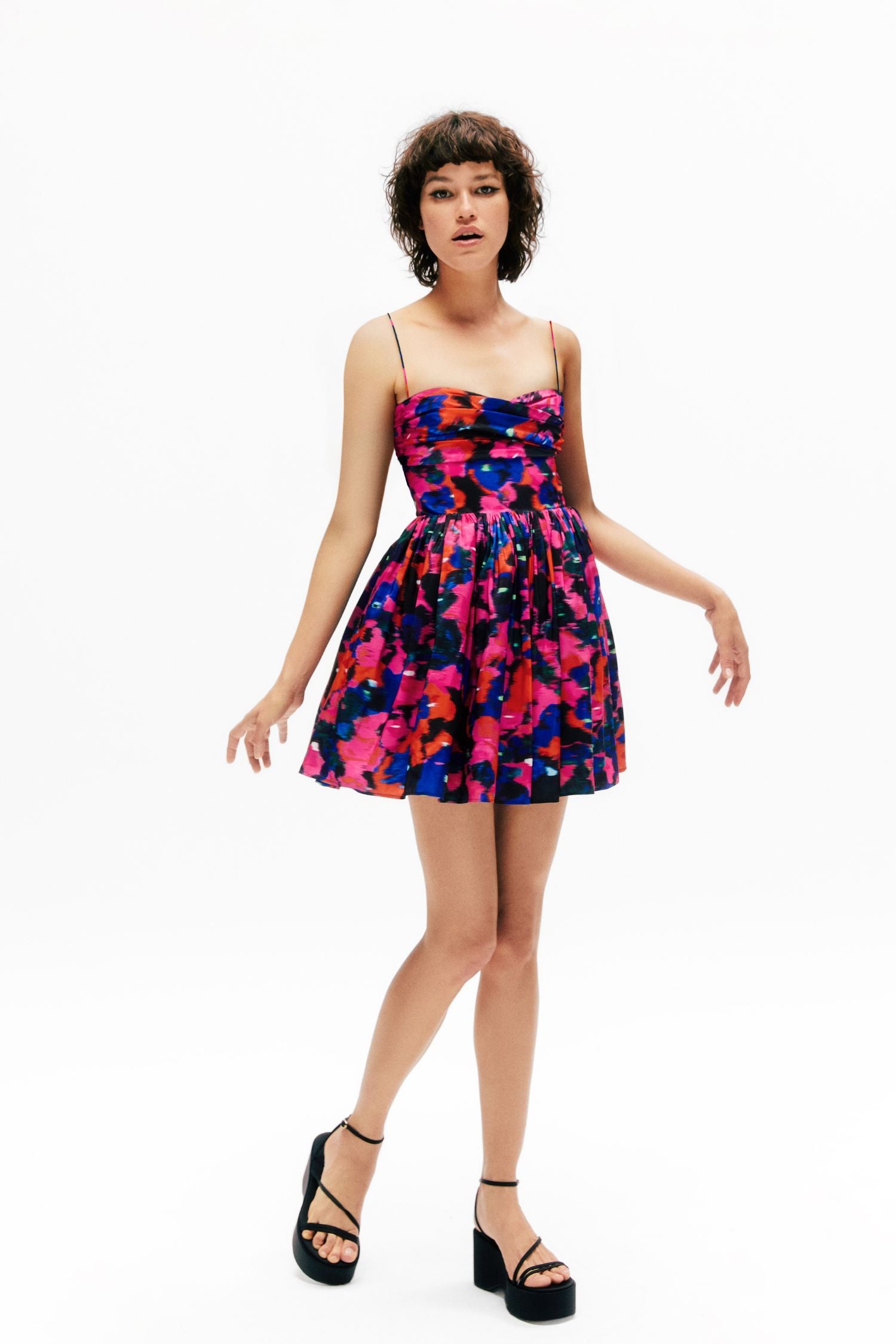 Unleash your daring side with our Daisy Dress.. Modify the spaghetti straps and embrace the voluminous, ruffled mini skirt with triangular sections for a lavish twist. The lightweight and airy taffeta fabric elevates this dress into a must-have for any event.