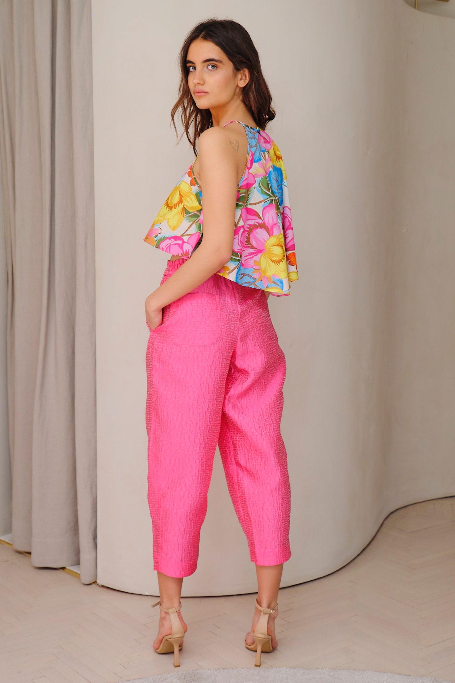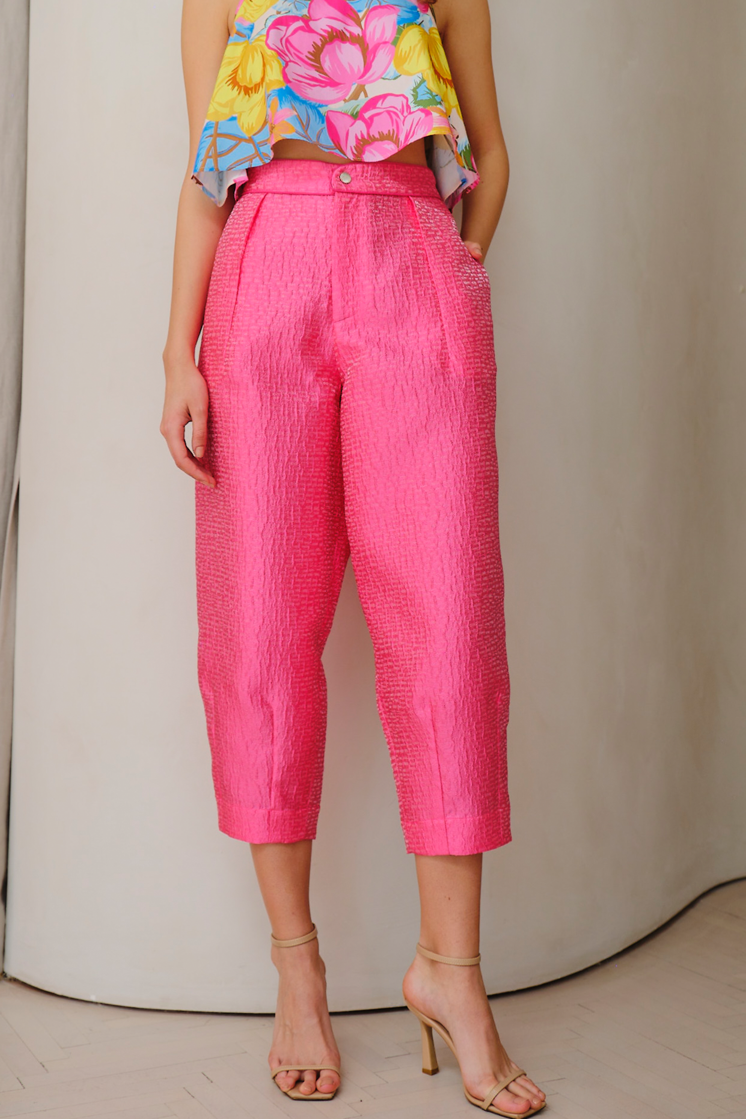 Conquer the day in our Lea Pants! Made with a balloon fit and high waist for comfort and style. Front metal snap button closure and single back pocket add unique details. Side pockets and elastic waistband in back provide functionality and a perfect fit. Take on any challenge with these pants!