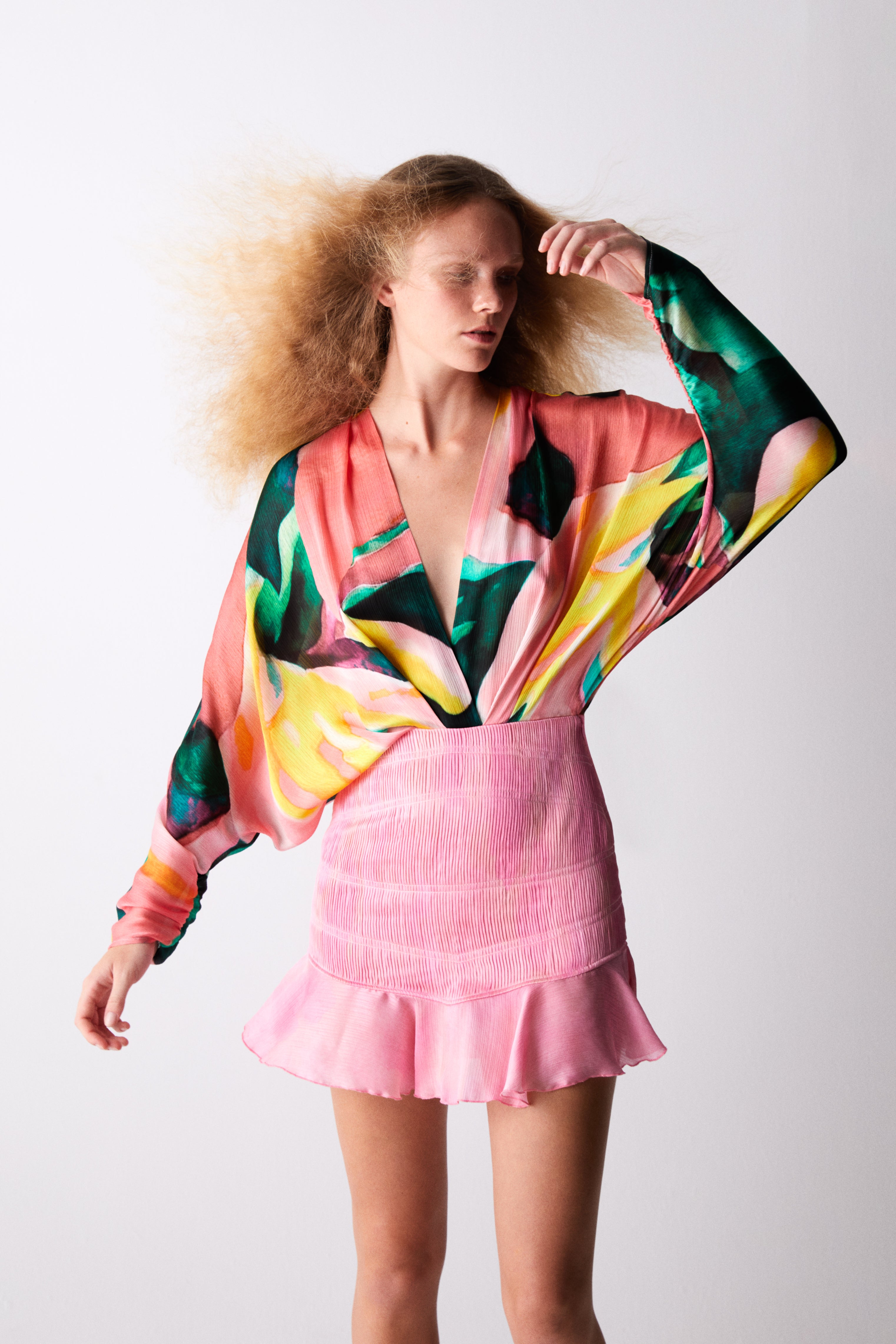 Get ready to turn heads in the Fiorella Mini Dress! With its playful floral print and flattering v-neck design, this mini dress is perfect for any occasion. The long sleeves and pleated skirt add unique touches to this must-have piece. Stand out in style with this quirky and fun dress!