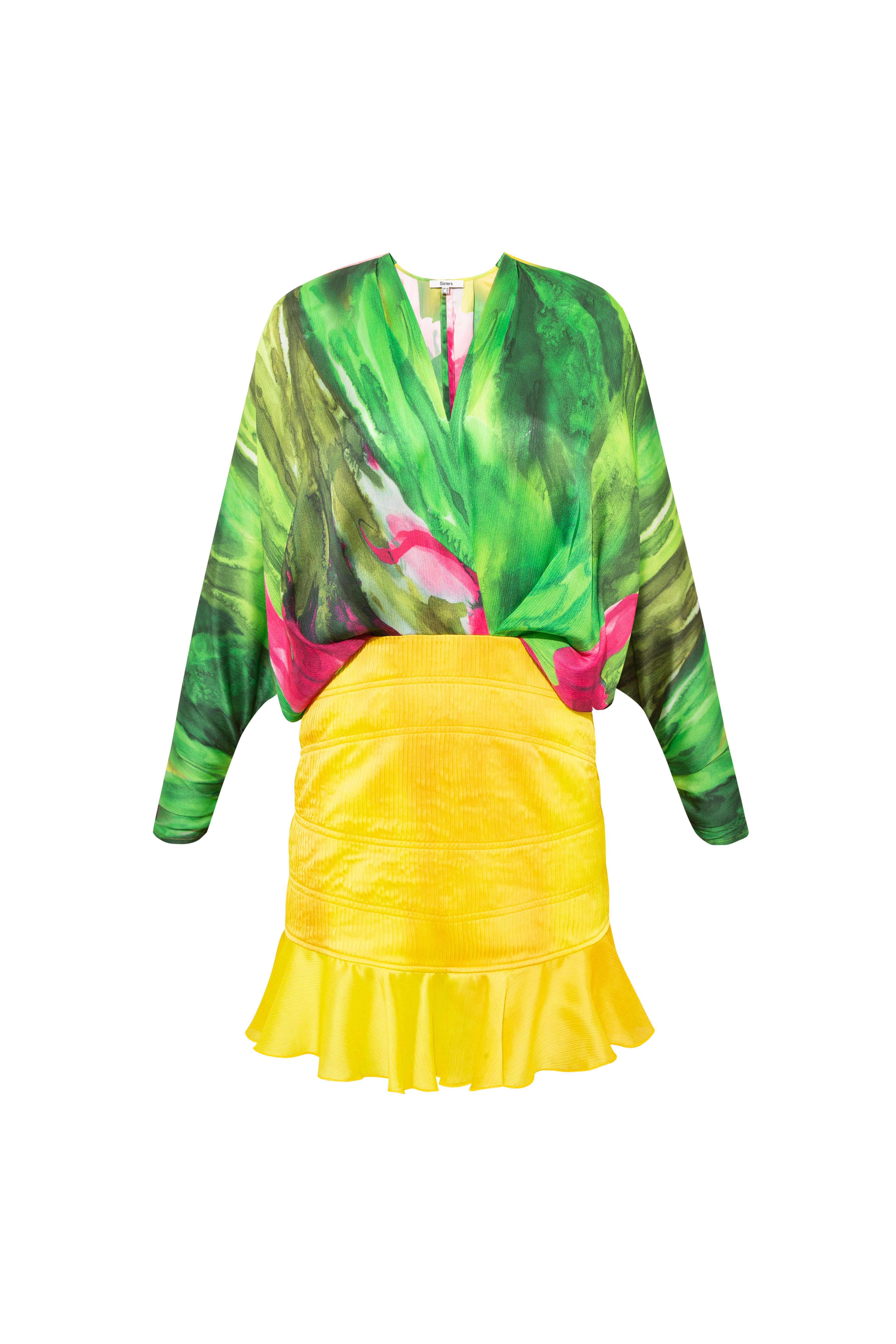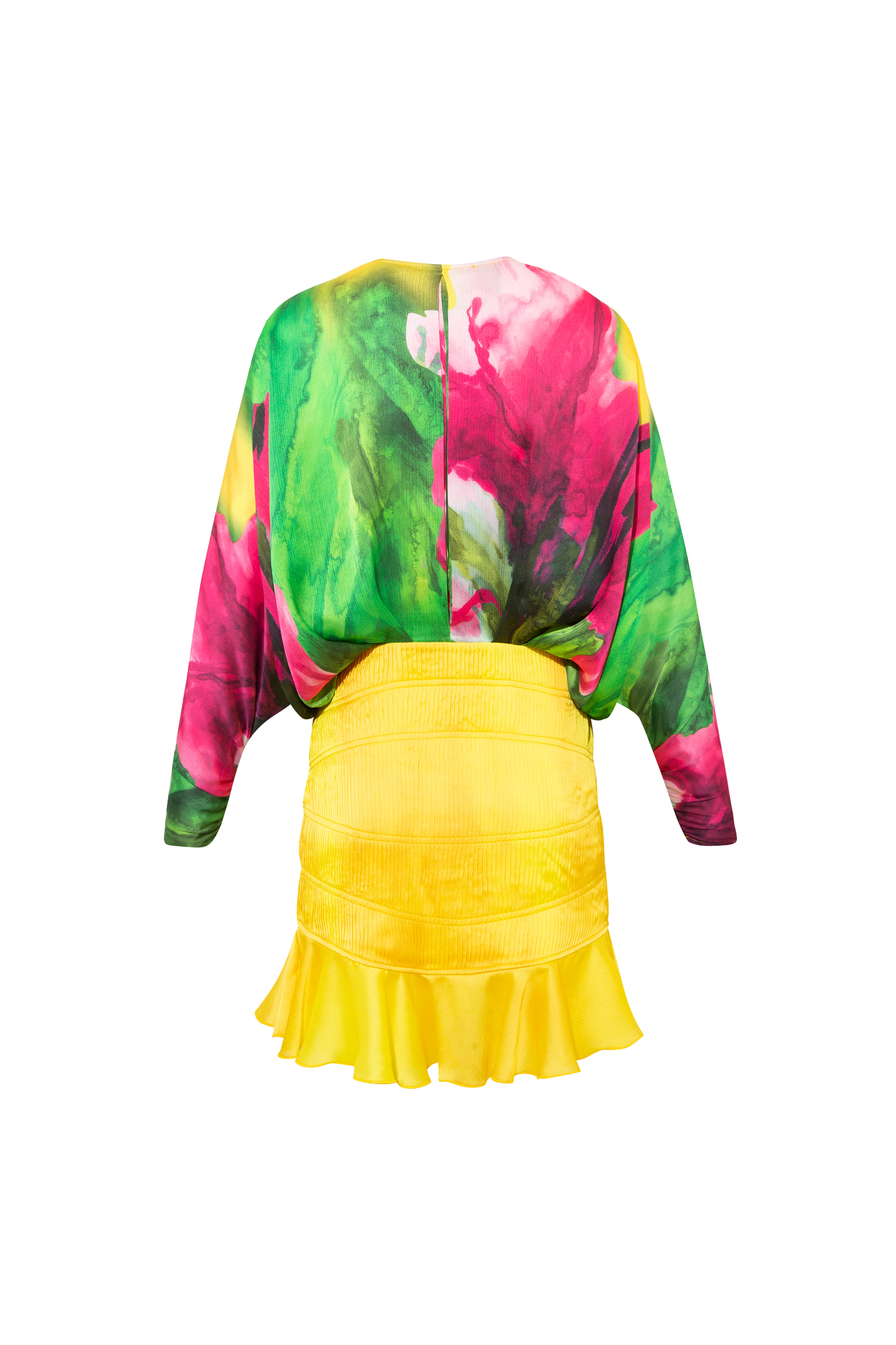 With a deep V-neckline and elegant kimono sleeves, the Fiorella dress embodies romantic style. The pleated waist detail enhances the figure, while the flowing skirt creates a soft, feminine silhouette. A perfect balance of elegance and comfort.