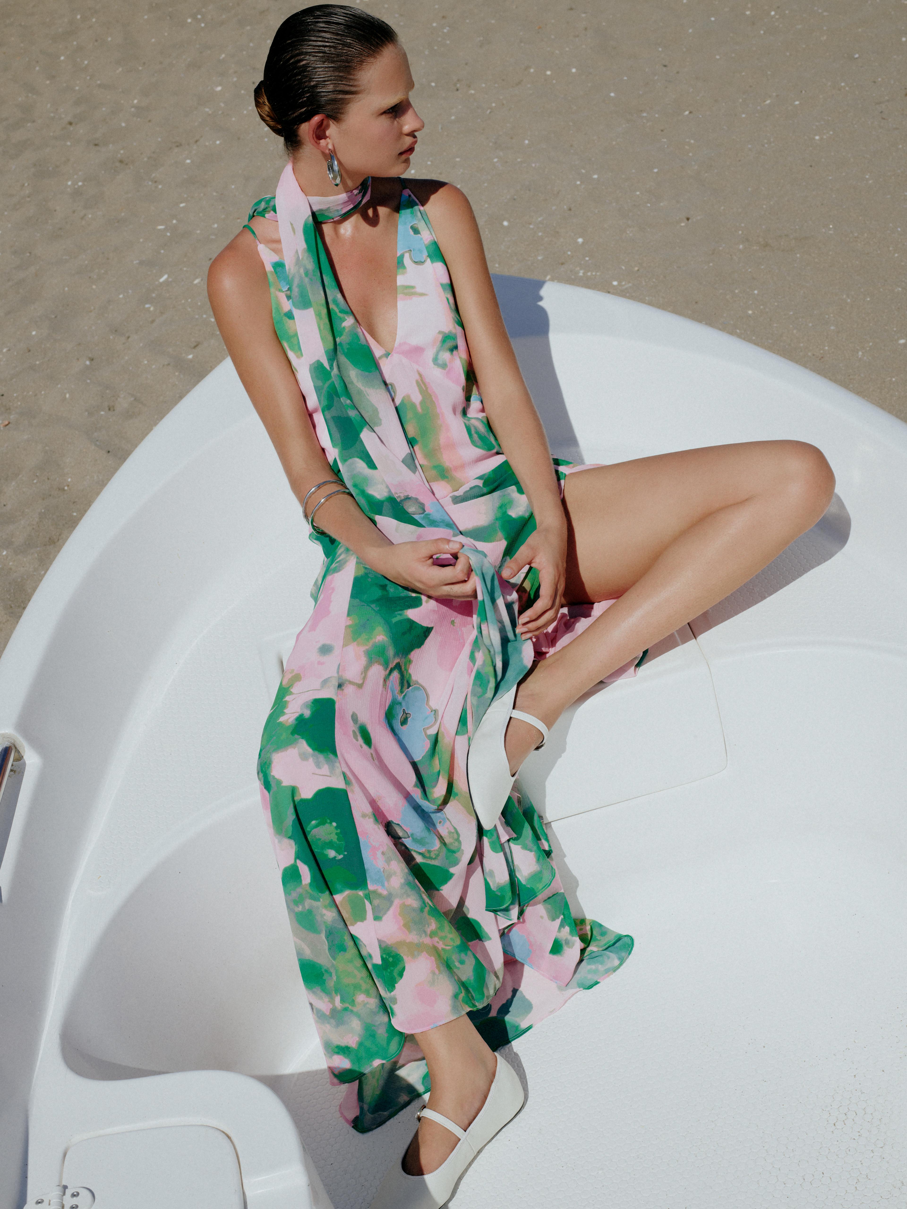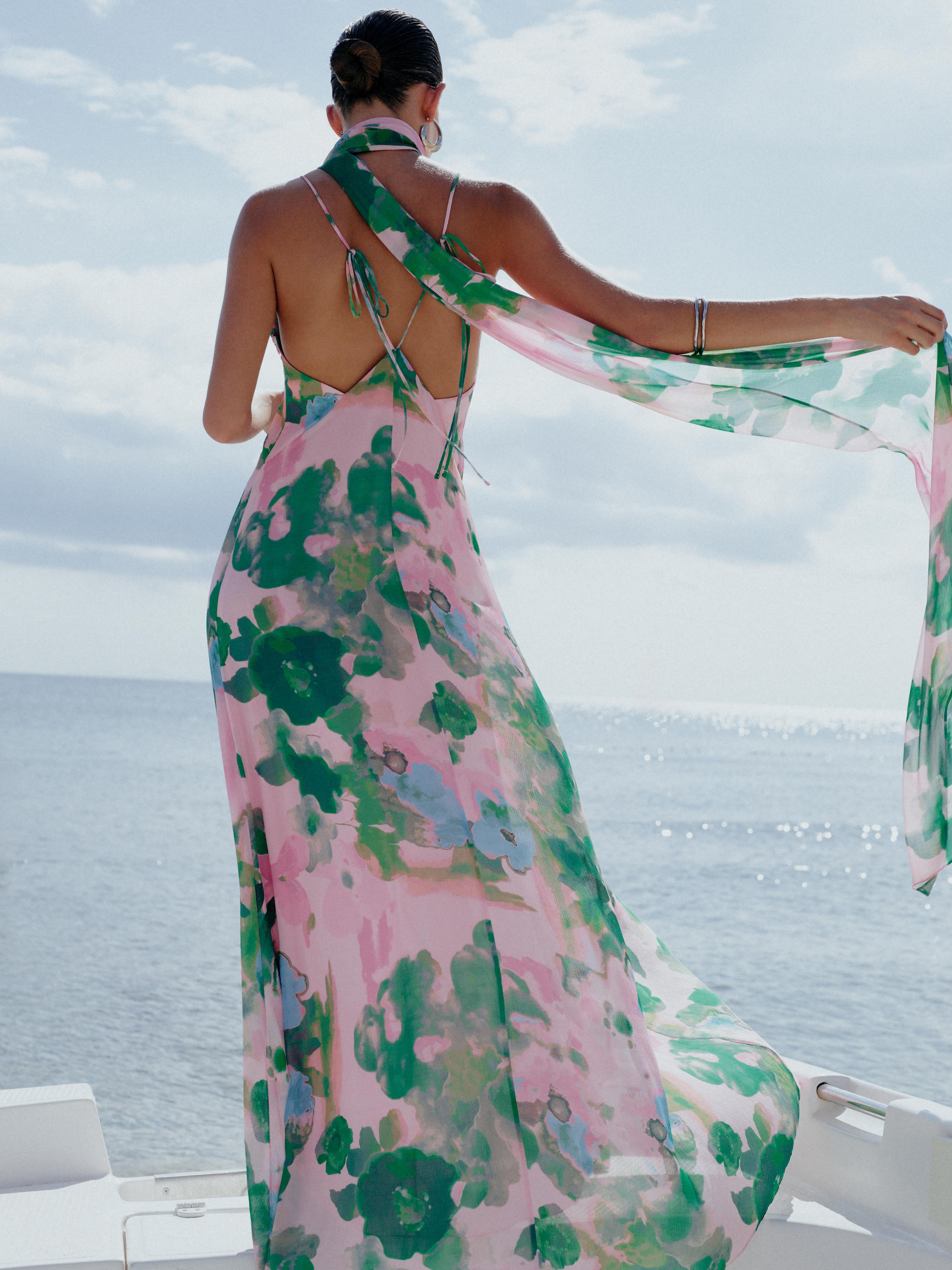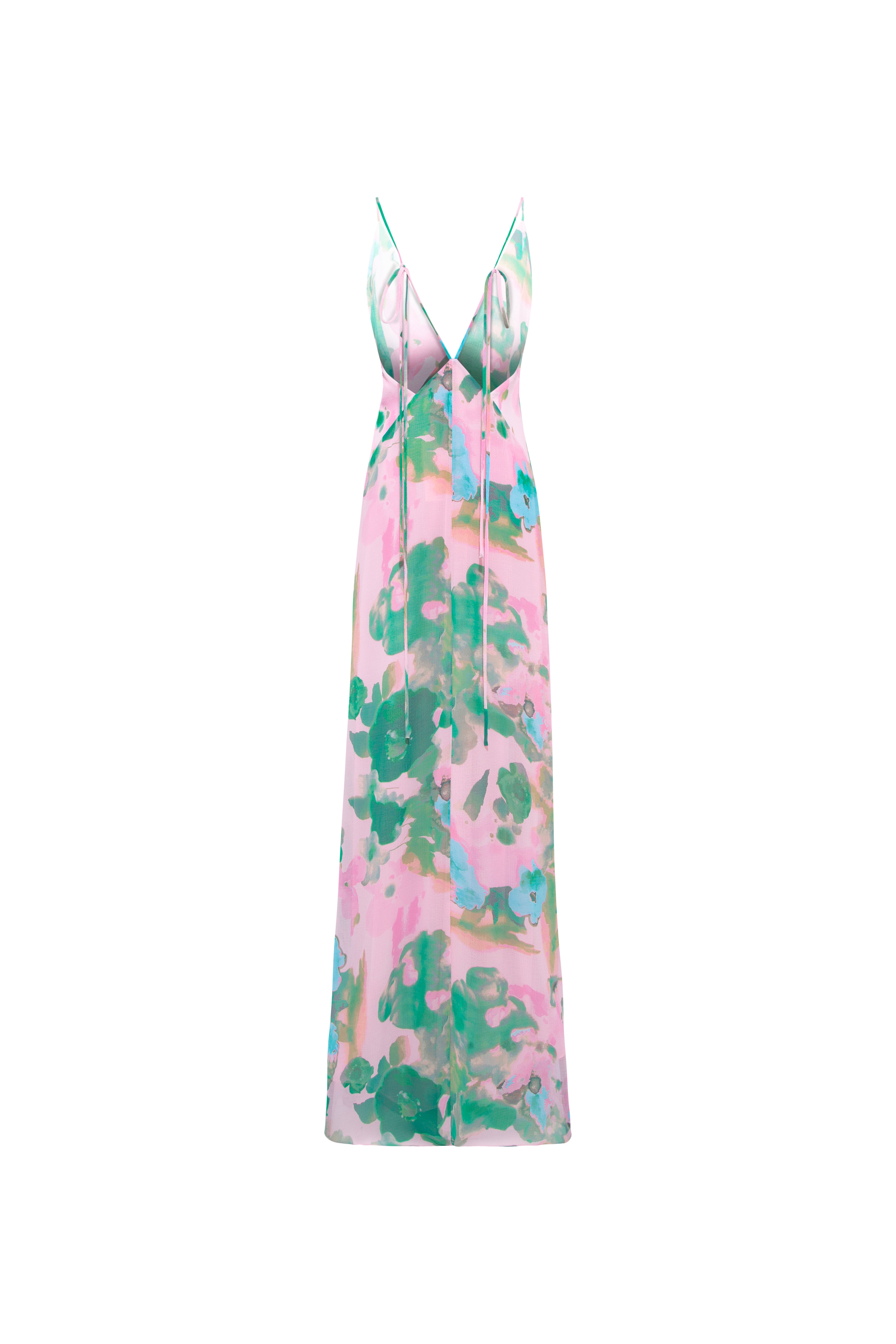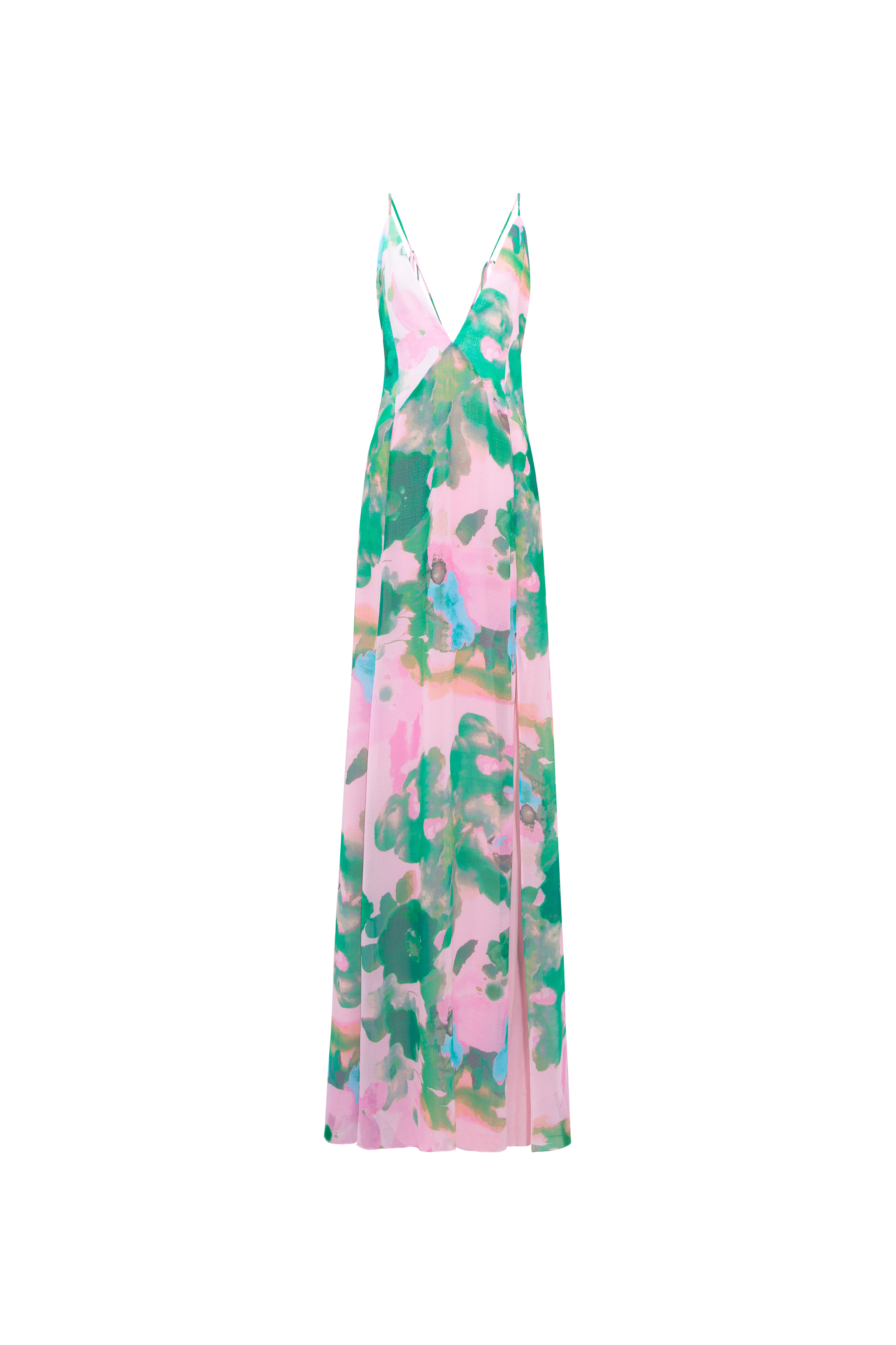 Elevate your summer style with the Jane Dress. Let its light, flowing silhouette dance and boost your confidence with its bold slit and adjustable tie-back details. The watercolor prints capture attention, while the silky crepe chiffon, with lining, adds a touch of sustainable luxury to your wardrobe. From boat trips to evening events, leave a lasting impression in this timeless and free-spirited dress.