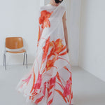 This long recycled polyester shawl is crafted in a romantic floral print, bringing softness and graceful movement to your look. Made from lightweight, fluid fabric, it drapes effortlessly over the shoulders, adding an elegant finishing touch while remaining comfortable and versatile. You can complete the look by pairing it with the Susanna Top and Violet Pants for a perfectly coordinated statement ensemble.