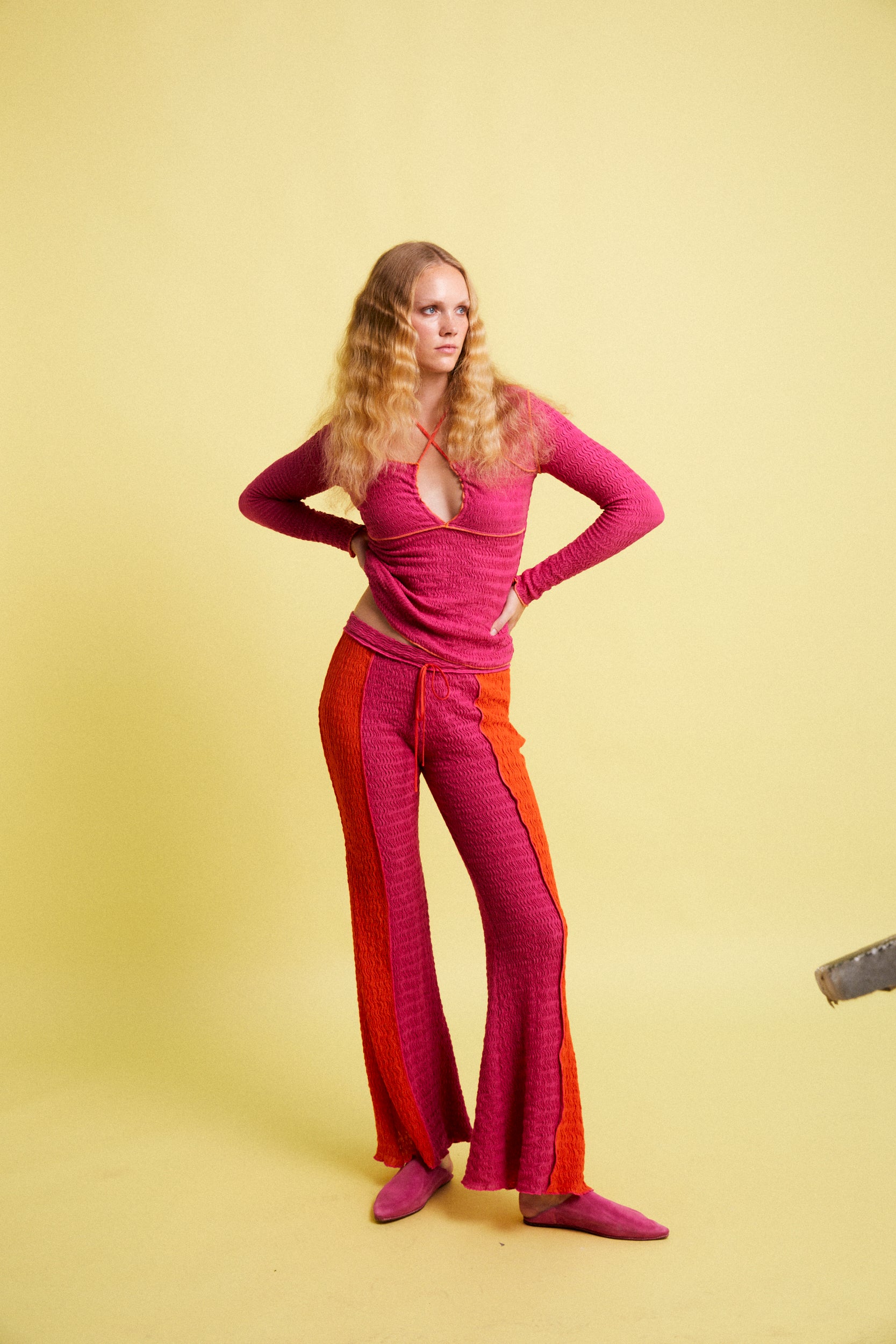 Experience the thrill of adventure in our Mirage Pants. With a wide leg design and two-tone color detail, these pants will keep you comfortable and stylish. The high waist ensures a perfect fit for all your daring endeavors. Take risks and conquer the unknown in the Mirage Pants!