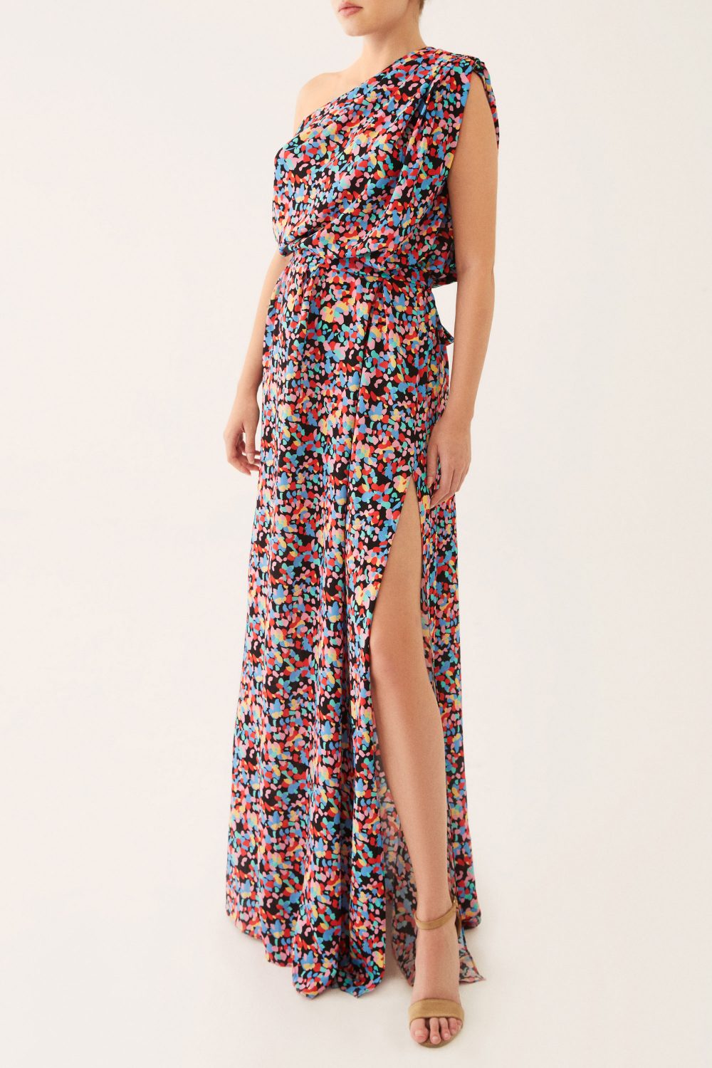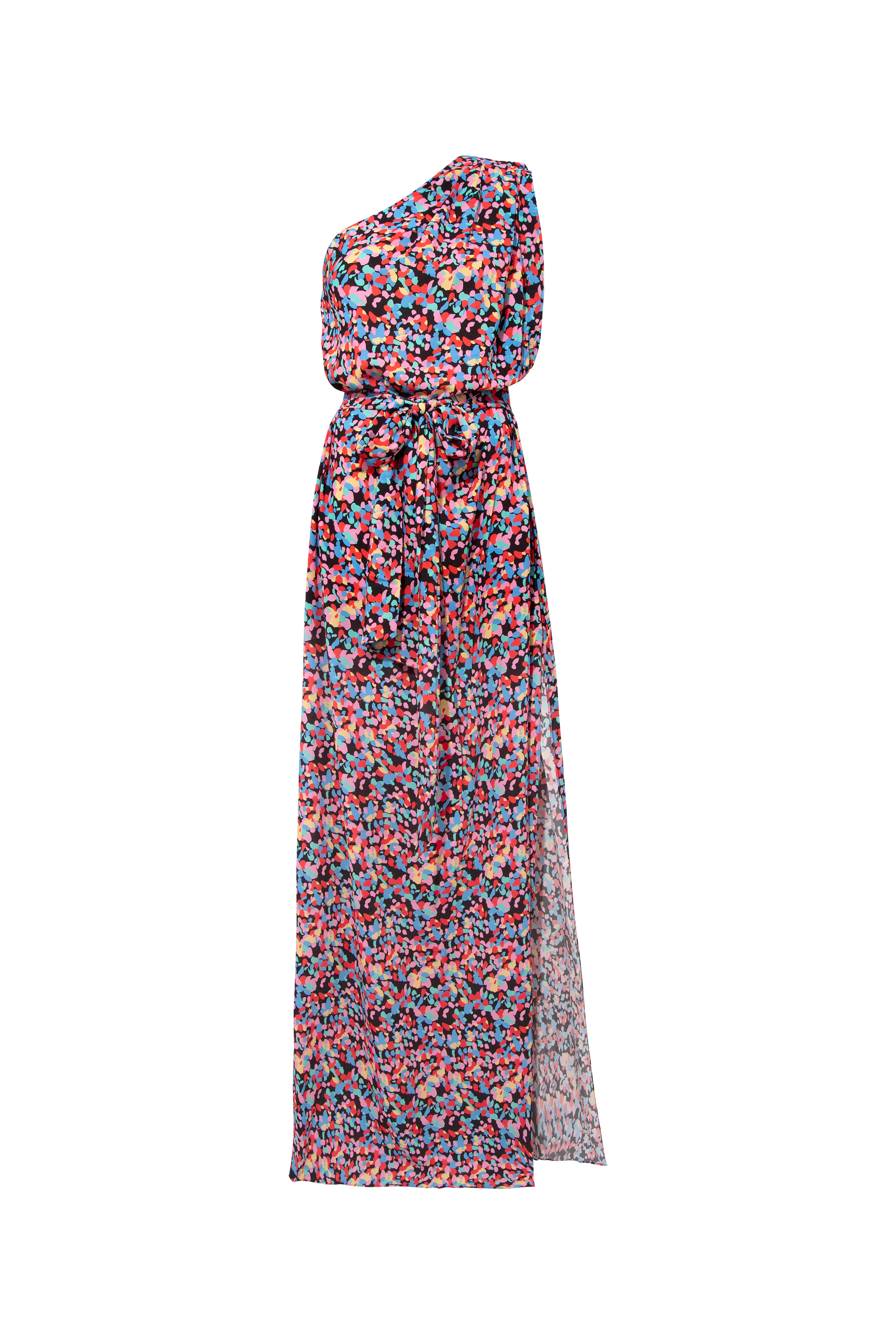 Get ready to turn heads with the Momo Dress! This one-shoulder maxi combines traditional Hollywood glamour with a modern twist. With a comfortable fit and stylish details like a waist belt, deep slit, and double-sided pockets, you'll feel both relaxed and chic.