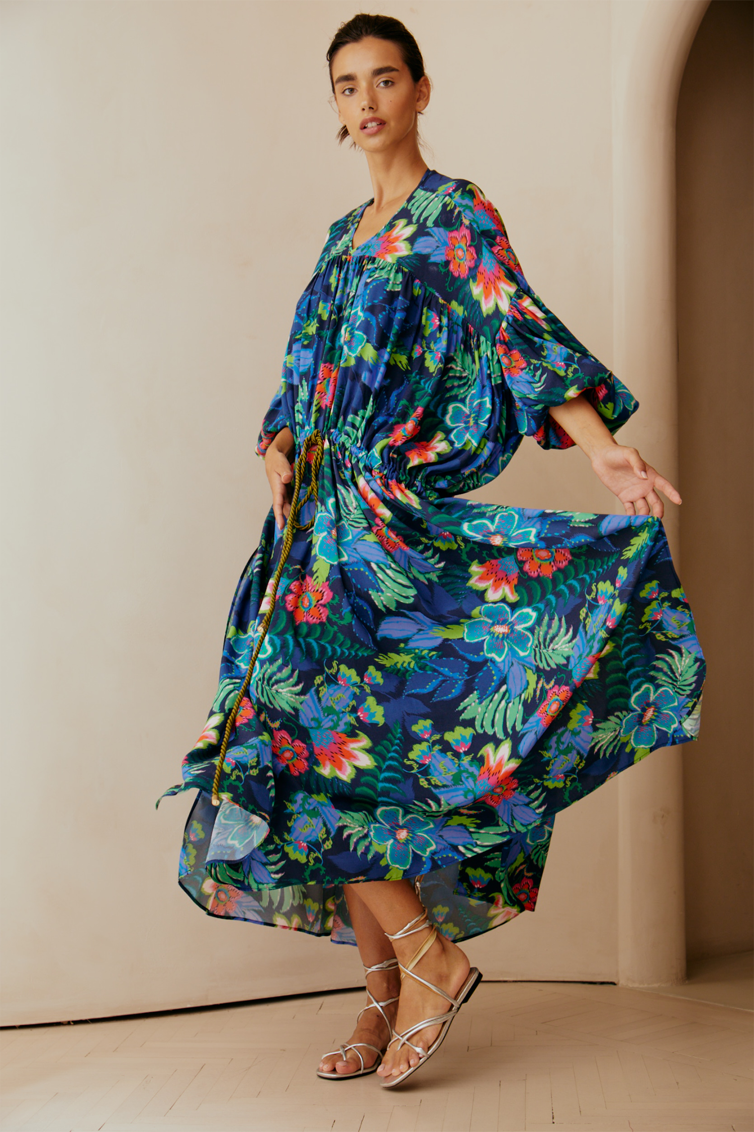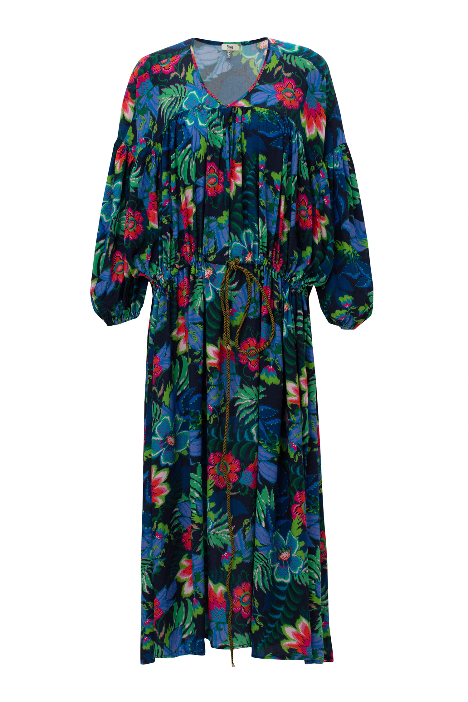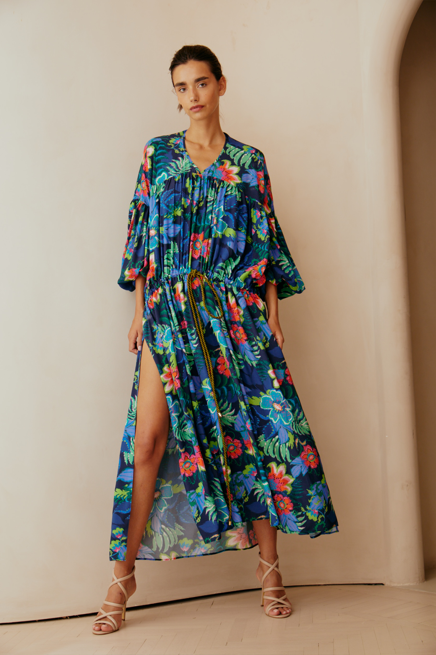 Be the belle of the beach in our Sirenuse Dress! With a flattering V neckline, maxi length, and tie waist detail, you'll turn heads with every step. The unique one-sided slit and 3/4 sleeve with elastic cuffs add playful touches to this unlined dress.